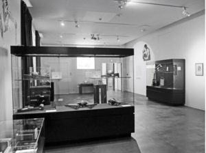 Ci-contre, une vue de la salle et de la vitrine où sont exposés les « double-cônes », quifurent au XVIIè siècle, de véritables vedettes de la « physique amusante ».