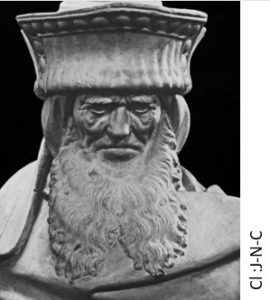 en plâtre ci-contre : le buste d’un noble vieillard barbu au regard apitoyé et las, dont l’imposant couvre-chef désigne souvent, dans l’iconographie chrétienne occidentale, un Juif d’importance