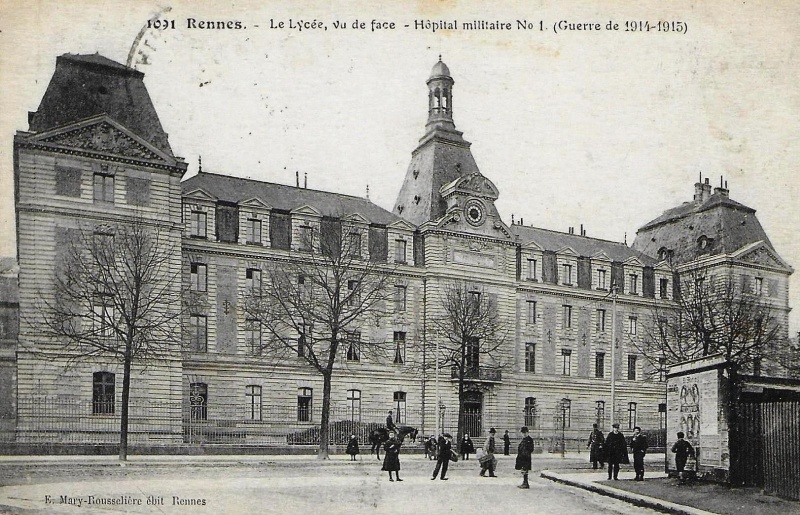 Le lycée devient « Hôpital complémentaire n°1 » dès le début du conflit. Les cours sont suspendus dans les locaux affectés  aux équipes médicales qui prennent en charge les blessés et les soldats en convalescence. La rééducation fait appel à la mécanothérapie, à des traitements « physiothérapiques » qui nécessitent des équipements très spécifiques, du personnel soignant spécialisé. L' »hôpital complémentaire n°1″ de Rennes est doté de machines adaptées à différentes invalidités. Il est l’un des centres spécialisés dans la rééducation, l’ergothérapie. Un article de « La Science et la vie » de mai 1915 décrit l’organisation des soins proposés aux soldats convalescents,mutilés, invalides S Vie 1915 mécanothérapie.