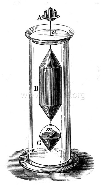 Description : Il est constitué d’un flotteur (B) creux lesté à l’aide d’un cône (C) et surmonté d’une tige qui se termine par un plateau ou capsule (A). La base du cône est légèrement incurvée ; lorsque le cône est accroché au flotteur, la base ressemble à un panier, d’où son nom « panier ». Un point de repère appelé point d’affleurement (O) est marqué sur cette tige.