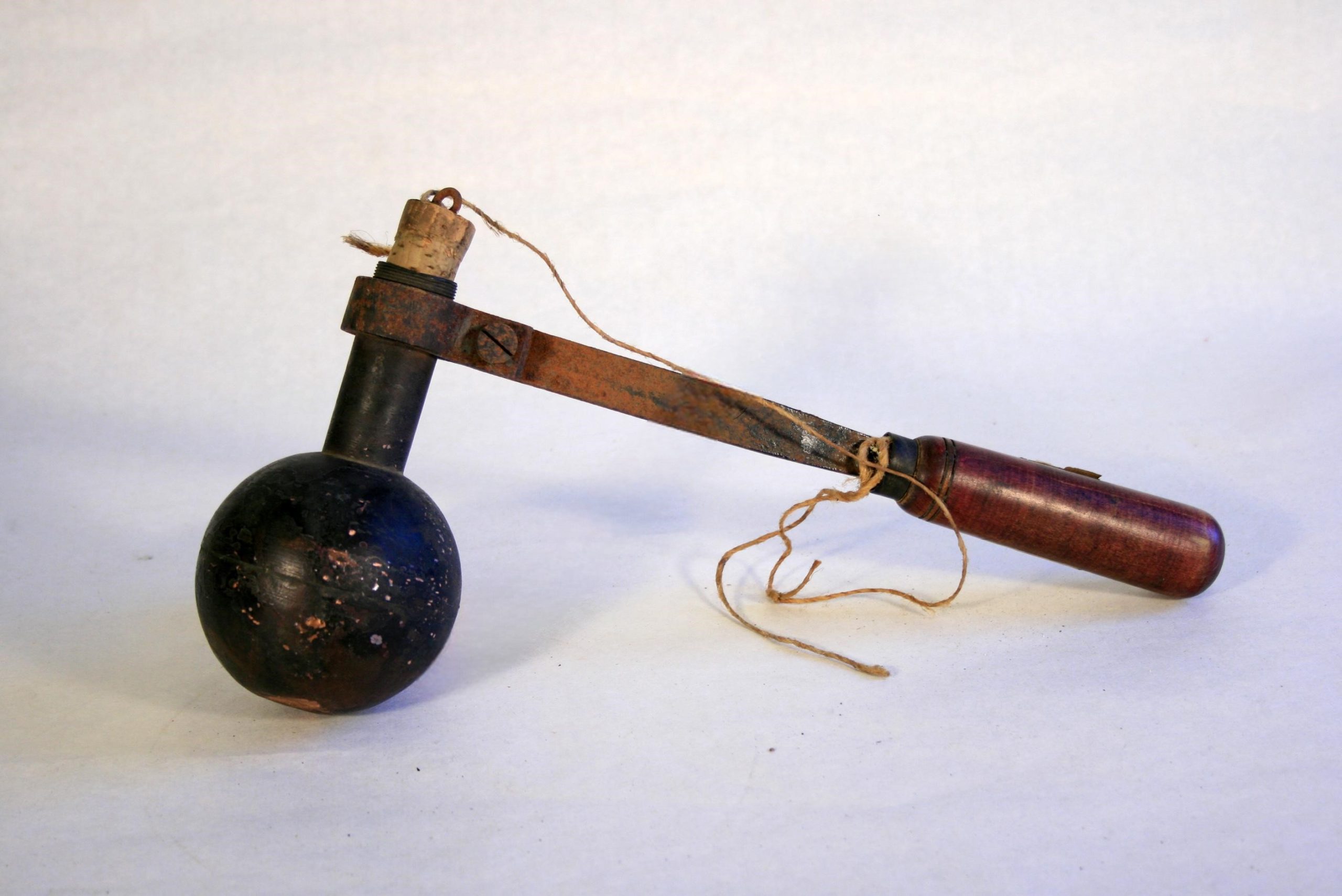 Description : sphère métallique terminée par un tube fermé par un bouchon, pouvant être chauffée