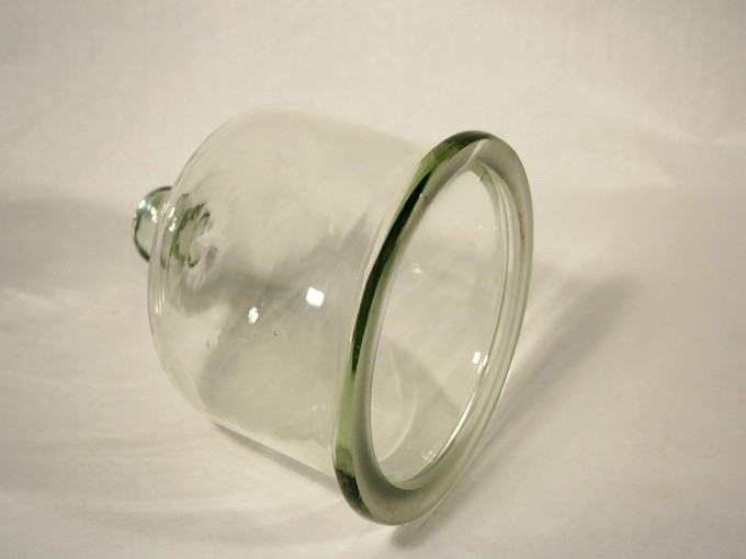 Description : il s’agit d’une cloche en verre épais, terminée par un bouton.
