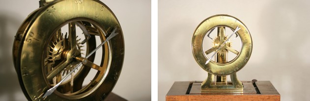 Description : l’appareil est constitué par un socle en bois , un balancier et un système d’échappement à ancre.
