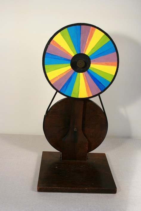 Description : l’apparail comporte un disque sur lequel on été peintes les différentes couleurs du spectre (rouge, orange, jaune, vert, bleu, indigo et violet )