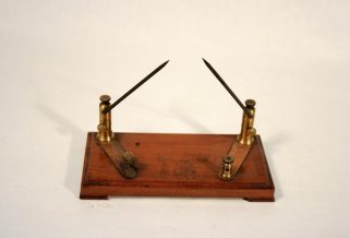 Description : l’appareil est composé de deux tiges de laiton effilées à l’une de leurs extrémités et reliées chacunes à une borne. On peut faire varier la distance entre leurs extrémités aigues.