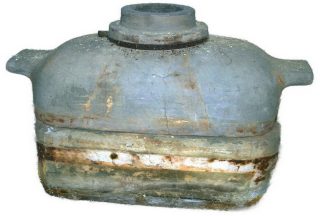 Description : ce fourneau est en terre réfractaire , il comprend le foyer et au dessus un dôme percé de trous latéraux pouvant supporter les tubes .