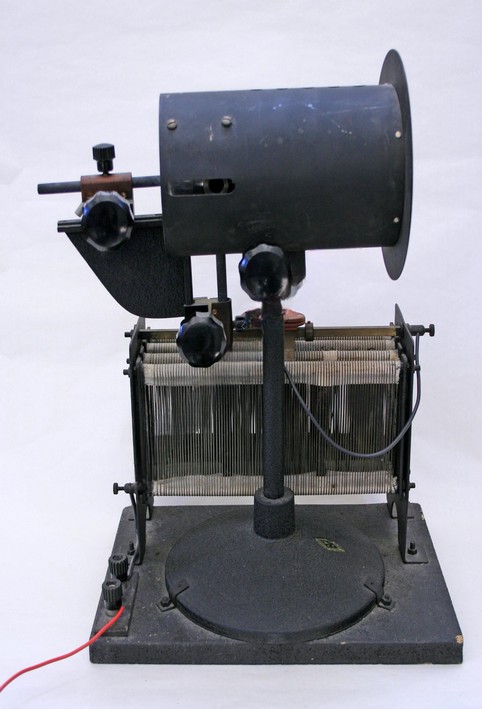 Description : l’appareil se compose de 2 baguettes de charbon . Deux vis permettent de rapprocher plus ou moins les deux pointes de charbon.