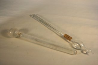 Description : il s’agit de tubes de verre dont une des extrémités est bombée . Il est rempli à moitié d’eau qui est longuement portée à ébulltion ce qui a chassé l’air du tube . Le tube est alors fermé à la flamme.