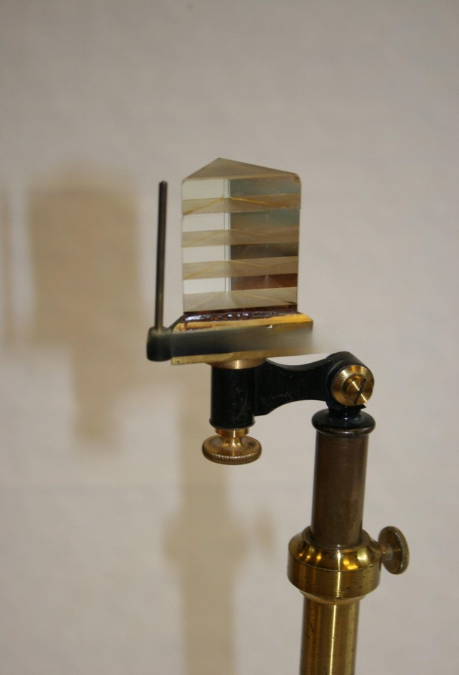 Description : il s’agit de plusieurs prismes de même angle accolés par leur section principale, de même hauteur. et constitués de quatre verres d’indices de réfraction différents.