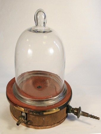 Description : l’appareil se compose d’une cloche de verre, d’une platine circulaire muni de 2 tubulures, et d’un joint d’étanchéïté en caoutchouc.
