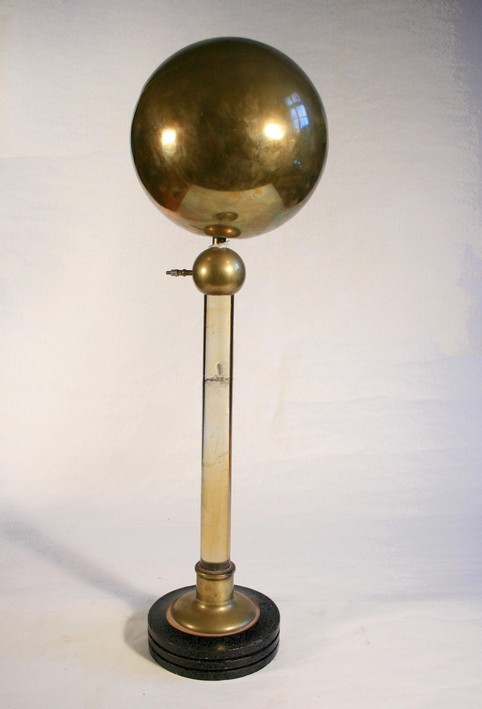 Description : l’appareil se compose d’une sphère en laiton posée sur un pied isolant en verre.