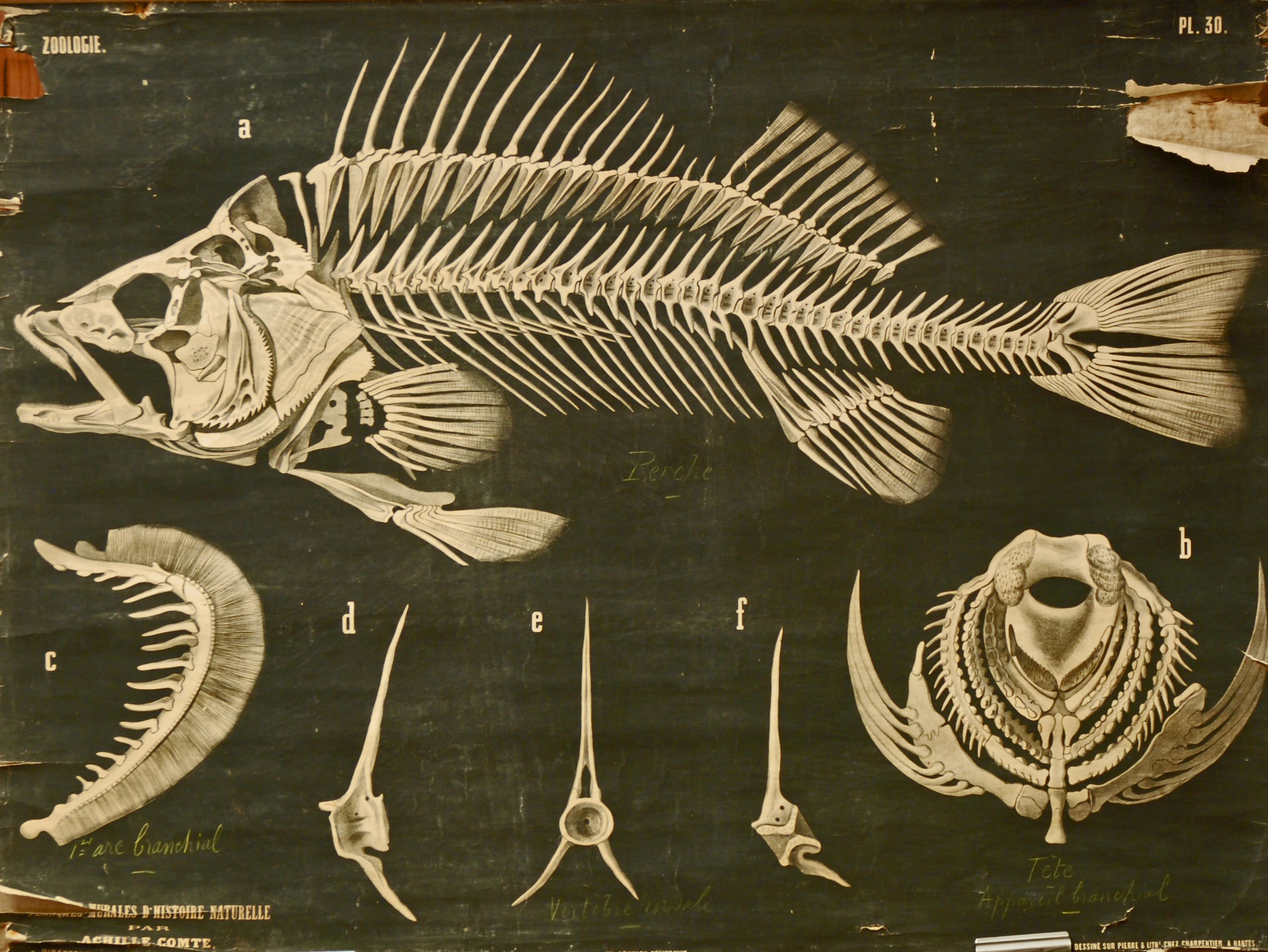 Cette planche contient plusieurs figures relatives au squelette de la Perche (poisson osseux).