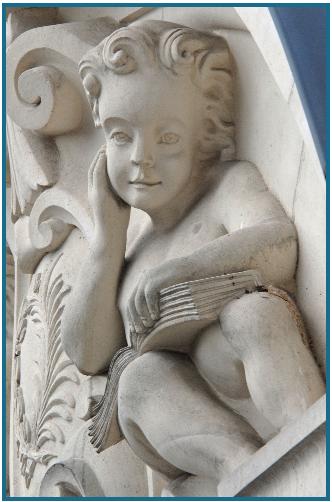 En 2000, les figures des frontons cintrés de cette aile de jonction — très détériorées — ont été réinterprétées avec talent par M. Alain HUART, sculpteur de l’entreprise SNPR chargée de la rénovation.