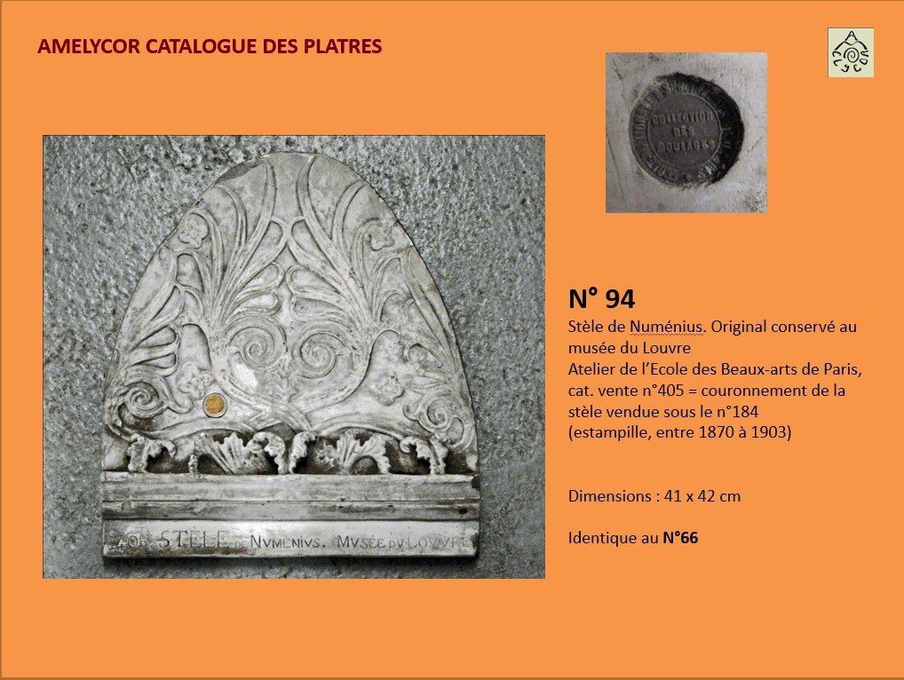 Les 142 moulages de la cité scolaire Émile-Zola répertoriés par l’Amélycor (Echo 42, p.26 ; Echo 60, p.7-9) couvrent toutes les périodes historiques.