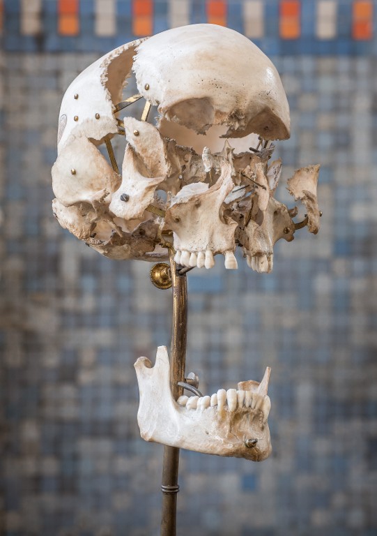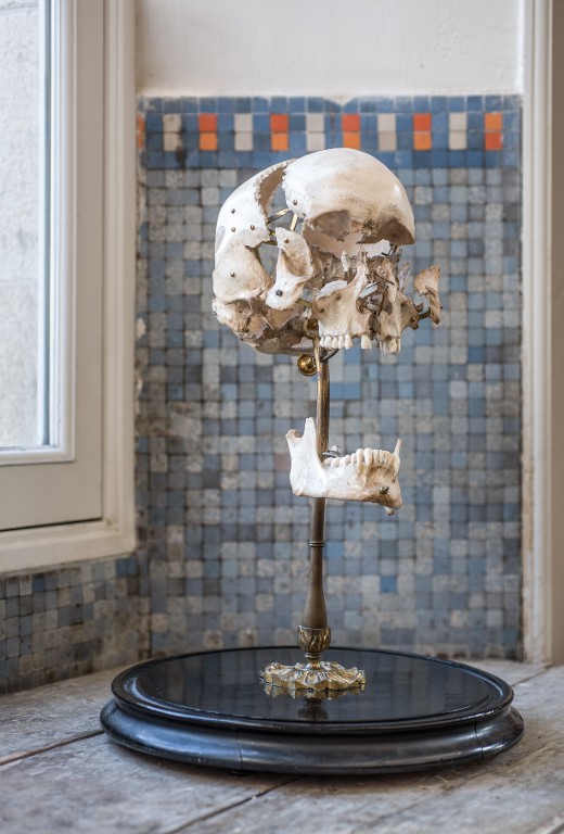 Les pièces osseuses par contre sont authentiques, ci-dessous un crâne humain éclaté des établissements Tramont.